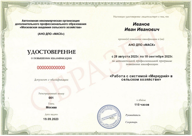 Курс повышения квалификации Работа с системой «Меркурий» в сельском хозяйстве (110ч)
