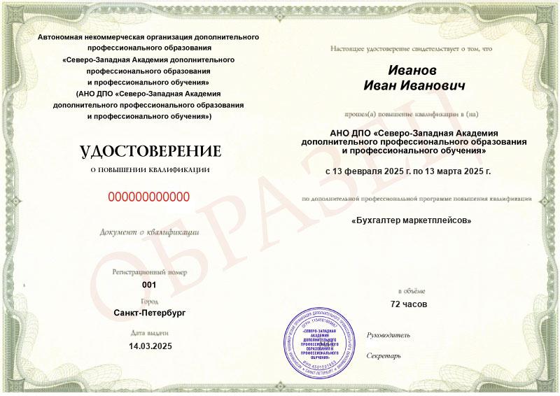 Курс повышения квалификации Бухгалтер маркетплейсов (72ч)