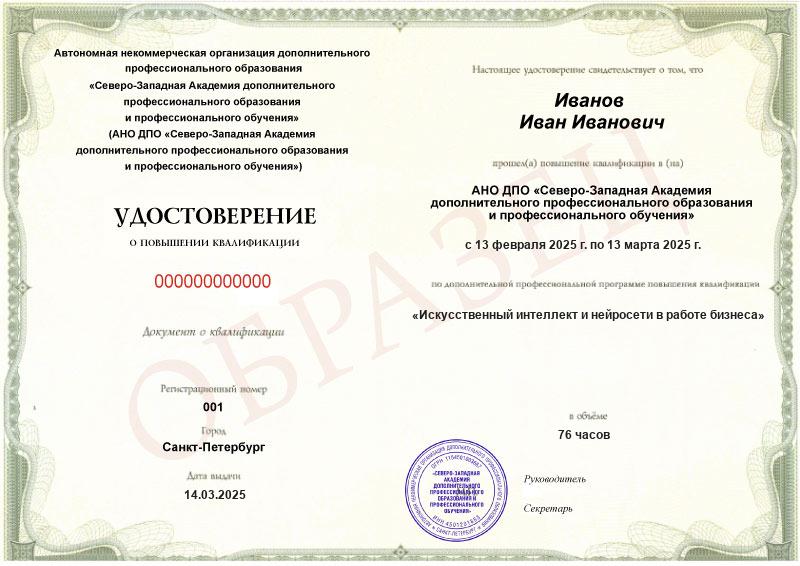 Курс повышения квалификации Искусственный интеллект и нейросети в работе бизнеса (76ч)